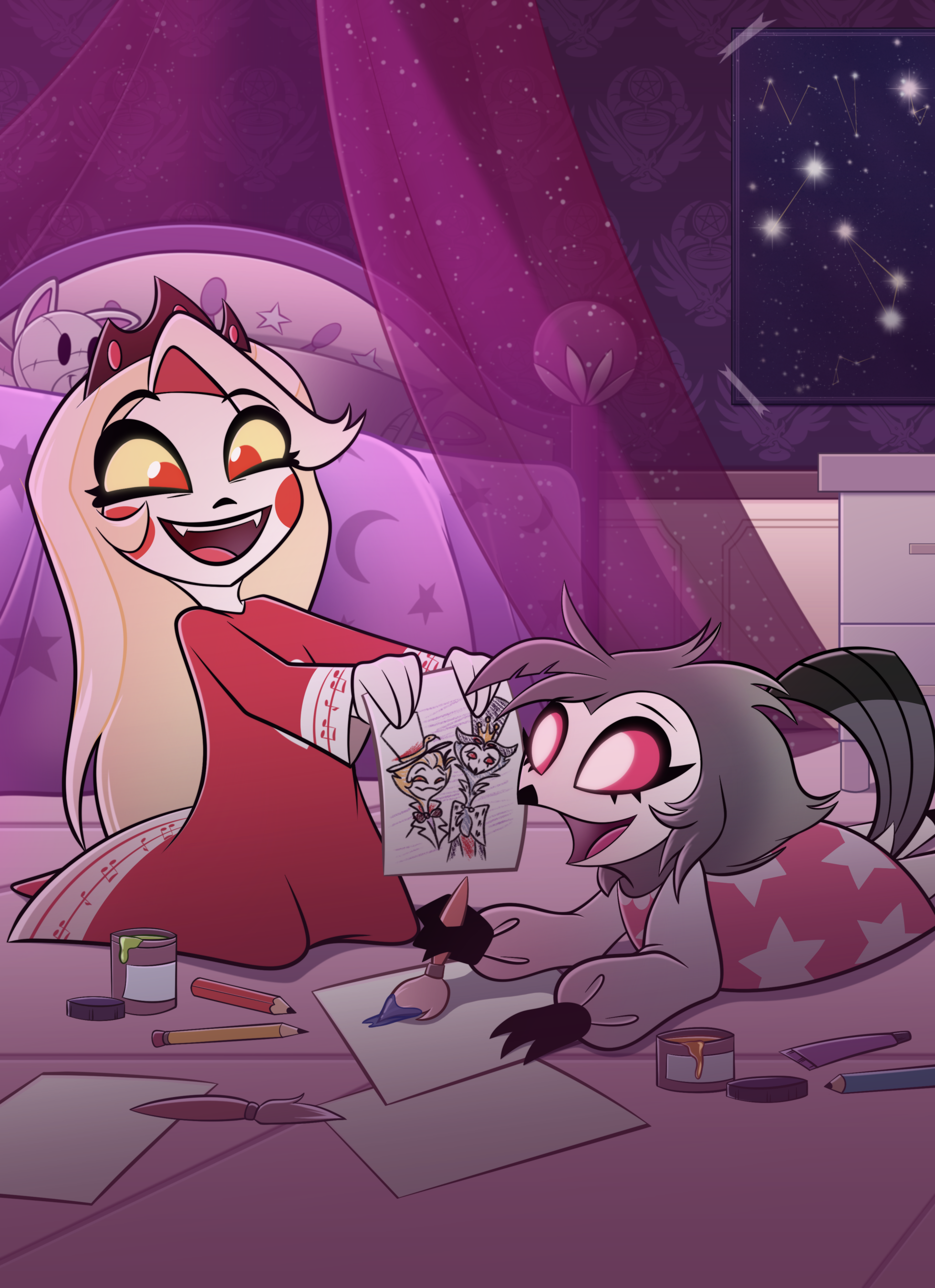 Moon is a digital artist based in France who specializes in cartoon-style illustrations. She discovered the Hellaverse when Hazbin Hotel premiered and was immediately hooked — the universe has since become one of her biggest creative inspirations.